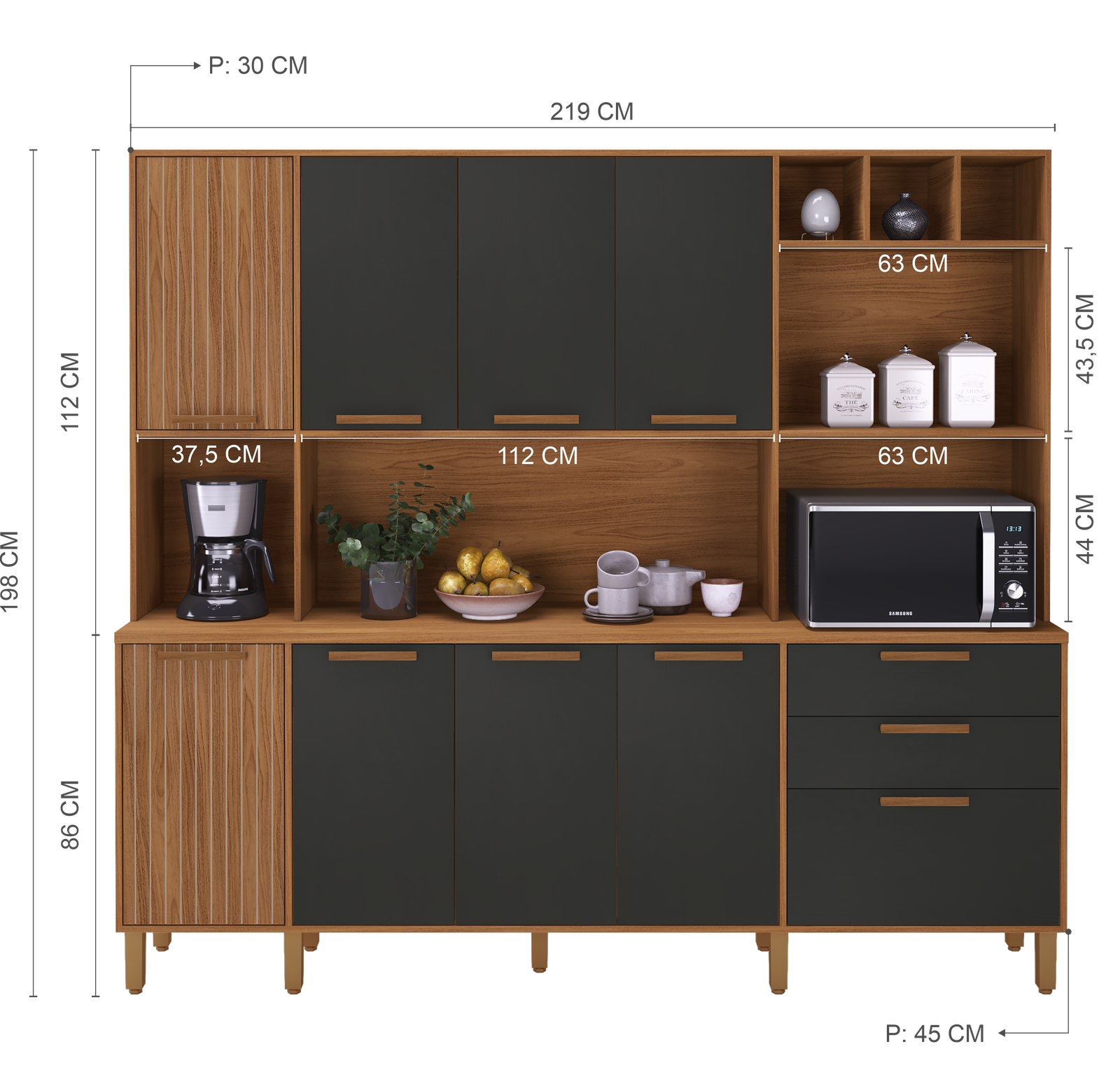 Armário de Cozinha Porto 9 Portas 2 Gavetas Indekes