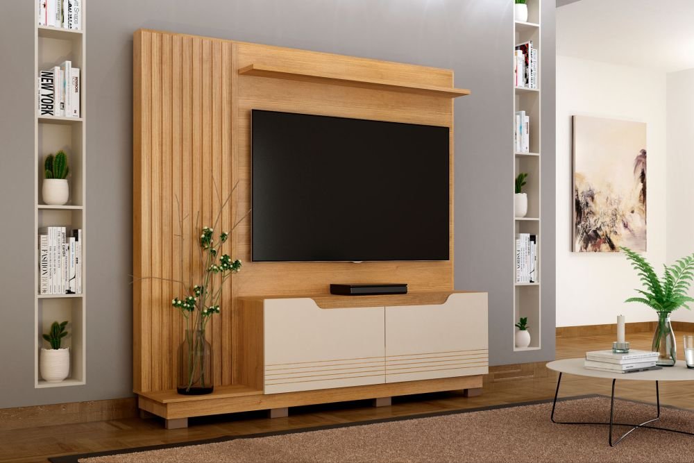 Estante Home Santiago para Tv até 80 Polegadas Cinamomo Off White Valdemóveis