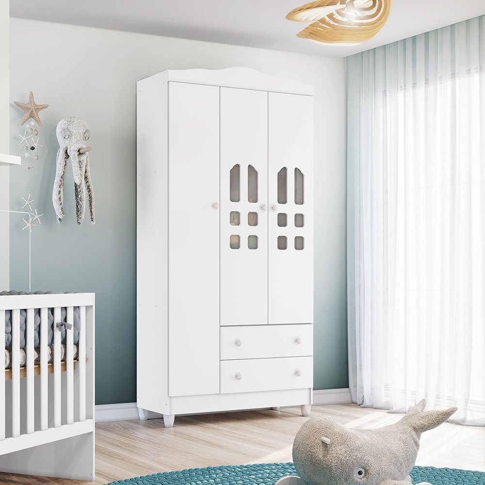Guarda Roupa Infantil Eloa 3 Portas 2 Gavetas Carolina Baby