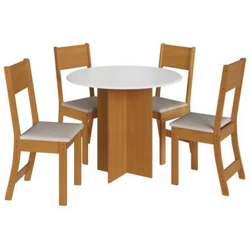Em dúvida na hora de escolher os móveis para a sua sala de jantar? Então vem conhecer a Mesa de Jantar Alice com 4 Cadeiras Indekes Freijó Off White! Esse conjunto é ideal para quem deseja transformar o seu ambiente e ainda otimizar o seu espaço, tudo isso porque ele conta com uma mesa redonda que permite acrescentar mais lugares. A mesa é fabricada em MDF além de ser mais resistente a umidade ela ainda pode ser usada tanto na cozinha quanto sala de jantar! Já as cadeiras contam com estrutura em 100% MDF e acabamento em pintura PU esmalte, acabamento que faz toda a diferença, elas também são estofadas em espuma com densidade D-12 resultando mais conforto e qualidade!