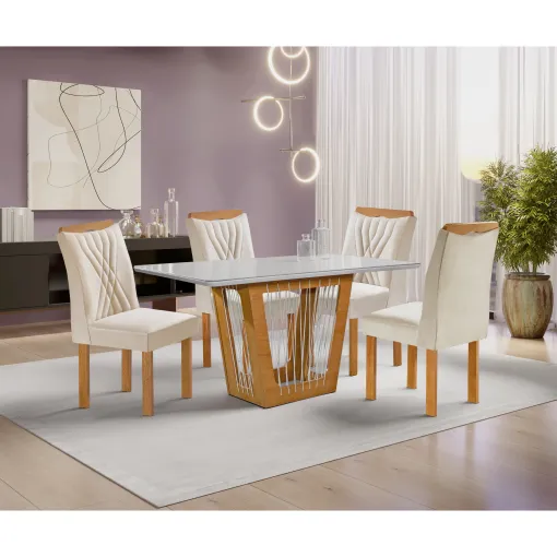 Mesa de Jantar Marselha 120x90cm com 4 Cadeiras Cel Móveis Cinamomo Off White