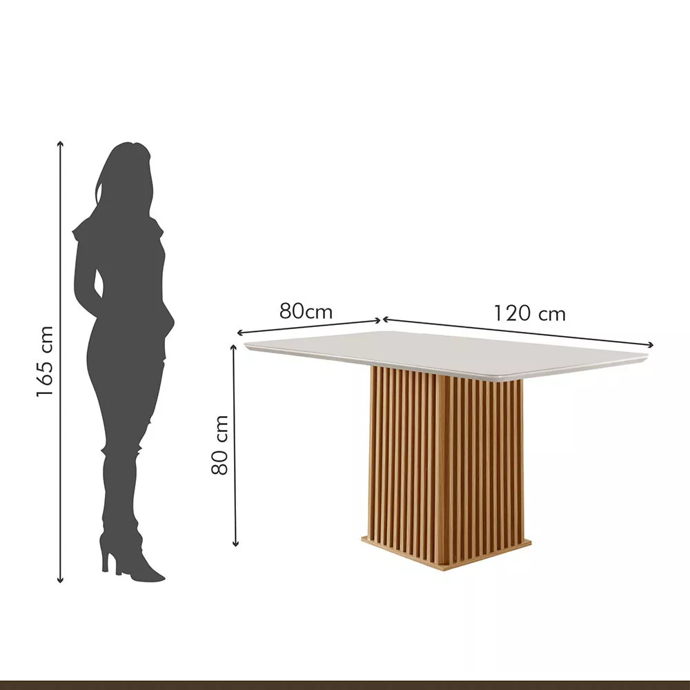 Mesa Riviera 120×80 Com Vidro Lj Móveis Cinamomo Off White