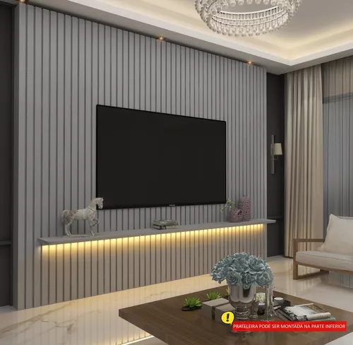 Painel Ripado para TV até 85 Polegadas com LED 1 Prateleira Nobre 230Cm Gelius